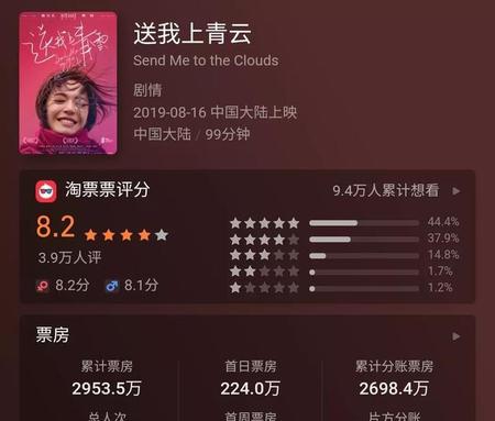 然而剧情片《送我上青云》,并没能延续《都挺好》的火爆,最终票房仅有2953万。