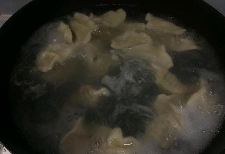 接下来煮饺子,锅开大火煮,轻轻的放入用勺子顺着锅边搅一下,最底下推一下,盖锅盖大火烧开 饺子浮起,用勺子顺着锅边推,4-6分钟就好了