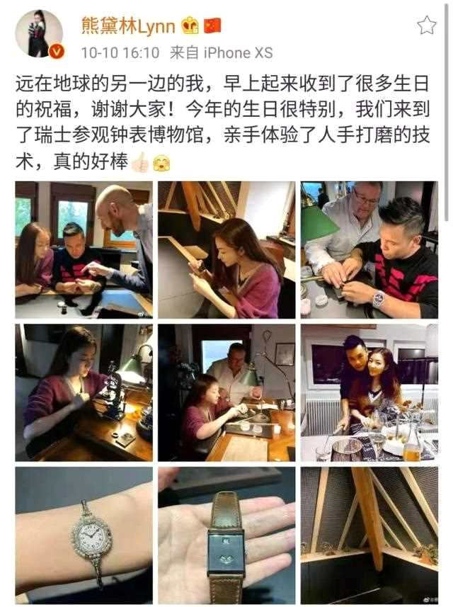 郭富城前女友熊黛林,曾被成为不合适的鞋,如今成幸福阔太。10月10日是熊黛林39岁生日,下午的时候她通过个人社交平台分享了一组与老公郭可颂一同出行的照片,还发文感谢大家对她的祝福,写道:“远在地球的另一边的我,早上起来收到了很多生日的祝福,谢谢大家!今年的生日很特别,我们来到了瑞士参观钟表博物馆,亲手体验了人手打磨的技术,真的好棒”。