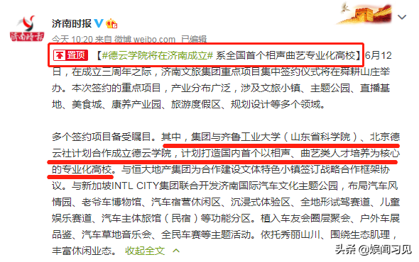 在6月12日,济南文旅集团举办了签约仪式,其中受人瞩目的是集团将与齐鲁工业大学以及北京德云社合作成立德云学院,德云学院将会打造国内首个相声、曲艺类人才的专业化高校。