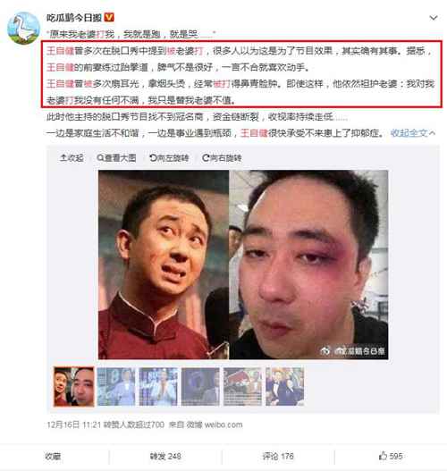 而下面则是王自健在节目上说自己被老婆打的段子