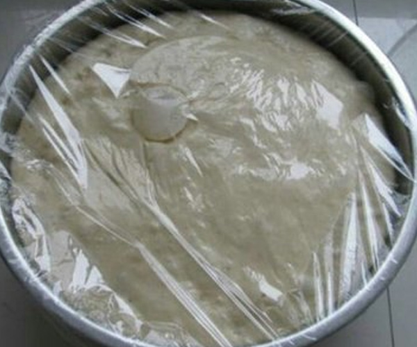 2、将热好的牛奶和鸡蛋分别加入面粉中,并将面粉揉搓成面团,面团盖上保鲜膜一小时,令面团发酵。