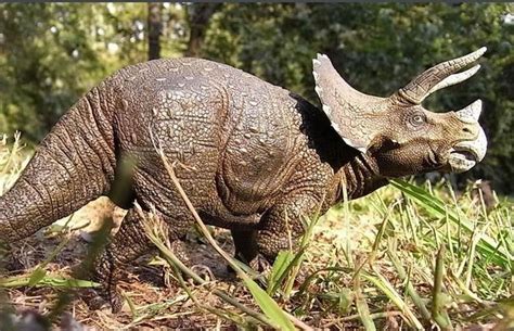 三角龙是白垩纪最晚出现的恐龙,非常有名气,它身长7.9到10米,臀高3米,重6~12吨,是一种中等大小的四足恐龙,他有非常大的头盾,以及三根角状物,令人联想起现代犀牛。