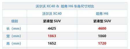 可以看到,沃尔沃XC40在车身长度以及高度方面是不及哈弗H6的,而在宽度和轴距方面要比哈弗H6更大,实车看上去,沃尔沃XC40其实是要比哈弗H6略小一圈的。