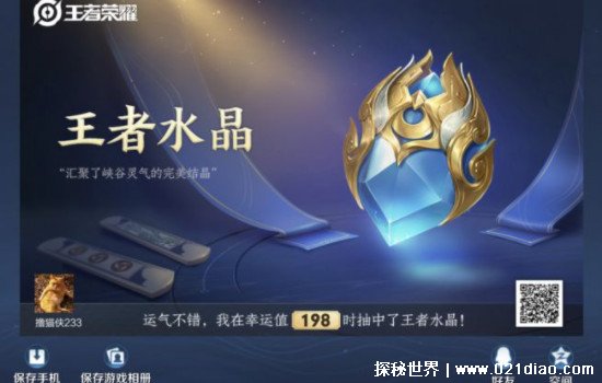 王者水晶在游戏中是使用游戏钻石获得的,游戏钻石在游戏中可以免费的获得。但是获得游戏钻石需要很长的时间,因此很多人也想要知道王者水晶的幸运值满值以及需要花费多少的游戏钻石。王者水晶的幸运值是200,抽中的概率比较大,一般幸运的话2000颗游戏钻石就可以获得了......