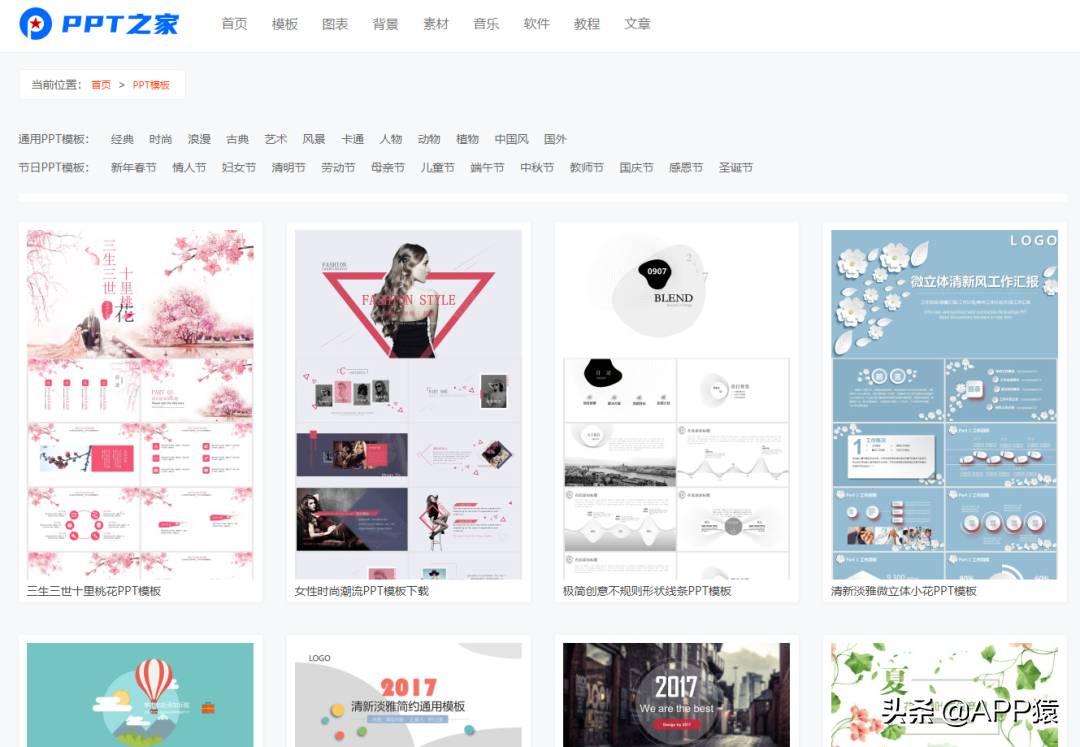 【第一PPT】同样也是个做得比较久的PPT素材站点,它的特点是素材的分类很多很详细,也在持续更新。但站点本身的设计就有点老旧,没有现在新站点设计那么潮和高大上。
