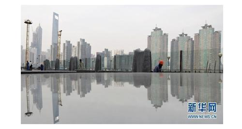 上海南外滩,玻璃防汛墙正在施工