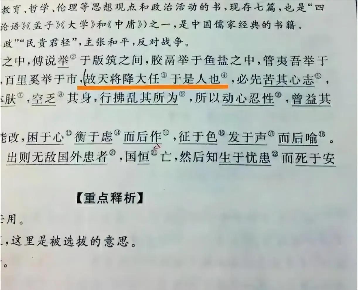 《生于忧患,死于安乐》中究竟是“天降大任于斯人也”还是“天降大任于是人也”引发了热议。为此人教社官方回应称:该出版社从1961年收录孟子的《生于忧患,死于安乐》课文以来,历套教材文章一直是“天降大任于是人也”从未有过“天降大任于斯人也”,不过“斯”和“是”这两个字的意思都表示“这”的意思,那究竟是“斯”还是“是”呢?网友表示:我从小背的是“斯人”,输入法自带的也是“斯人”难道是群体记忆错乱吗?有专家称这可能是“曼德拉效应”在作怪。