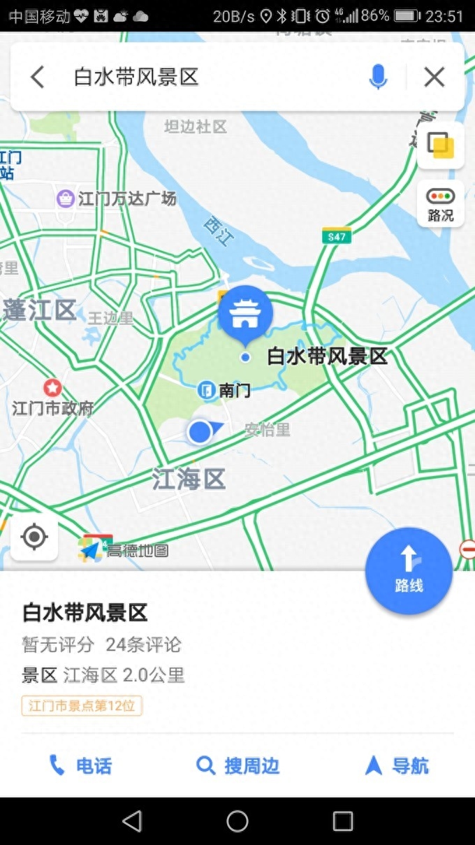 白水带桃花园位于江门市区白水带体育公园旁大华山脚的桃花园正花开灿烂,面积约有100亩的桃花园,3000多棵花迎春开放。白水带大道第一牌坊往第二牌坊方向走大约500米,道路左侧有醒目的指示牌,按指示登上一小段山路,看到桃花园,白水带大华山桃花园。山里的空气特别清新,山上绿树拥翠,山下桃花成林,大部分桃花含苞欲放,有小部分已经盛开,花蕊上还沾着水珠,十分美丽。