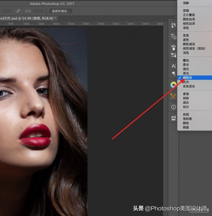 6.现在我们的画面是灰色的(这就是提取出来的纹理),不过没关系,将高频图层混合模式设置为线性光。