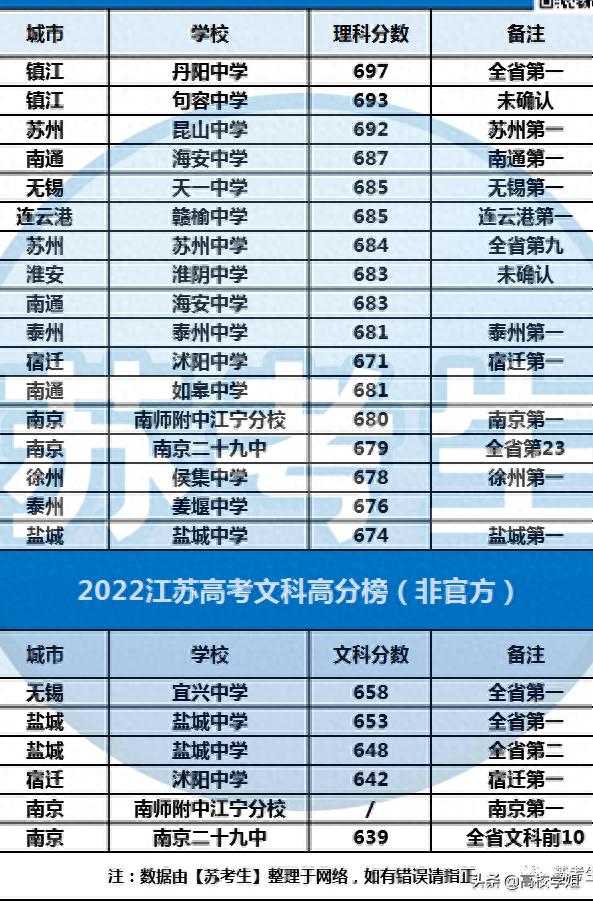 江苏省各市高考情况汇总!理科状元697分,文科状元658花落无锡