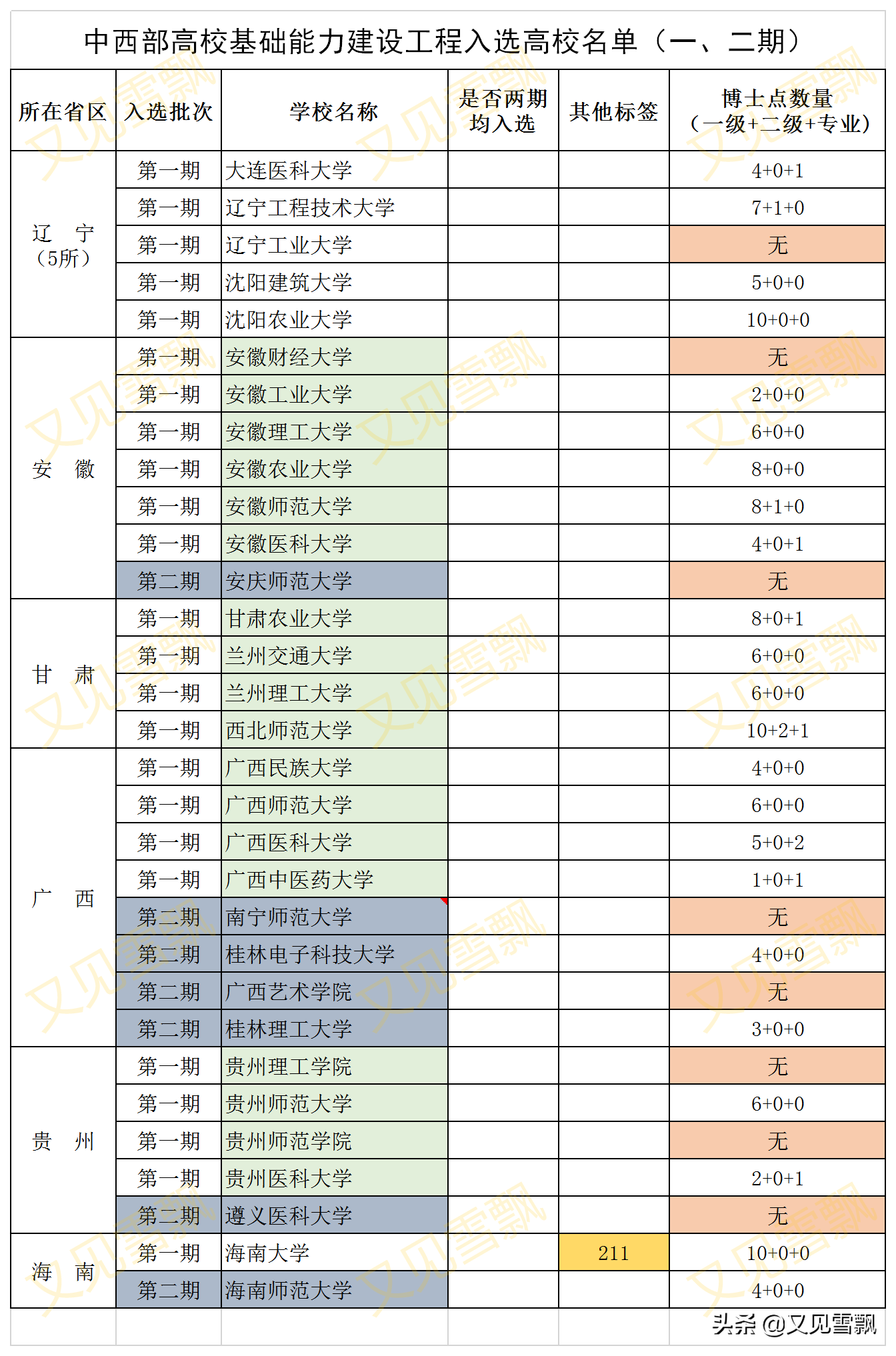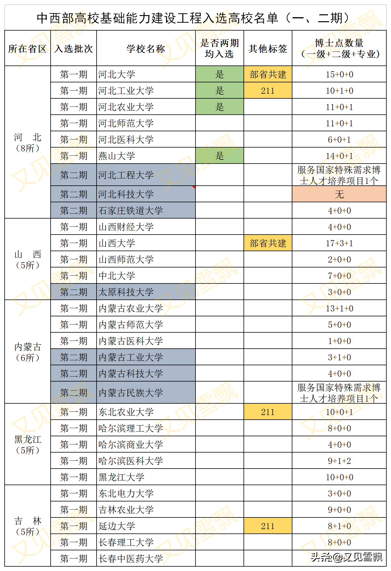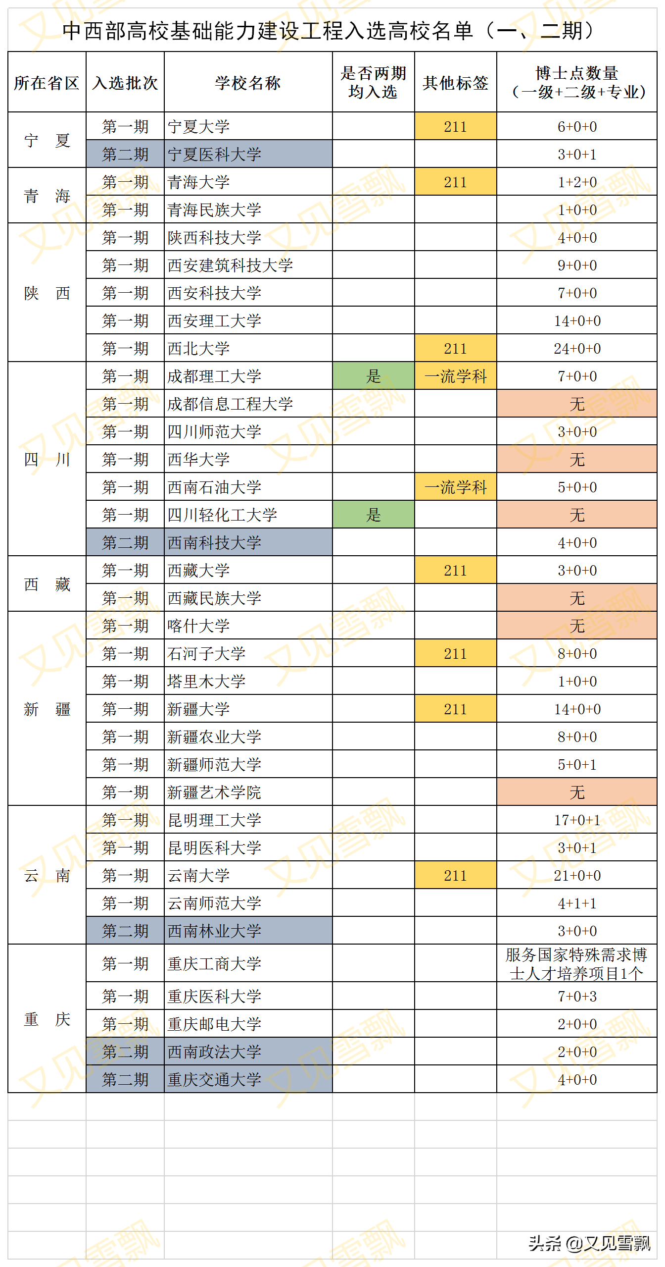 2020年是中西部高校基础能力建设(二期)的收官之年,自2012年以来该工程先后支持了中西部省份的100多所高校,对我国中西部地区高校基础能力的提升起到到重要的推动作用。本号收集了教育部及部分省市教育部门、高校有关中西部高校基础能力建设的相关文件、报告,并进行了深入的研究,梳理出了一份相对准确的“中西部高校基础能力建设高校名单”并对该工程进行了客观的解读,请广大考生、家长参考使用,如发现有疏漏,请予指正!
