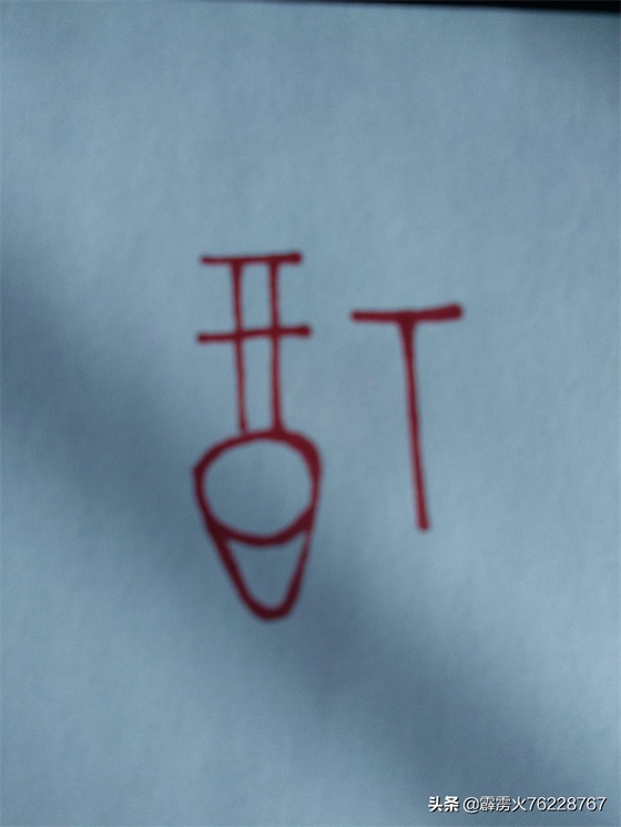 右侧T的形状,在甲骨文中代表祭祀的高台;左边的形象很明显,一个大酒坛。这仅仅是甲骨文福字中最简化的一种。组成字的构件的摆放位置与现在的不同,而这在甲骨文中是常见的情况。写在左侧、右侧,都可以,写在上下也可以,重点是组成字的构件(图符)存在。