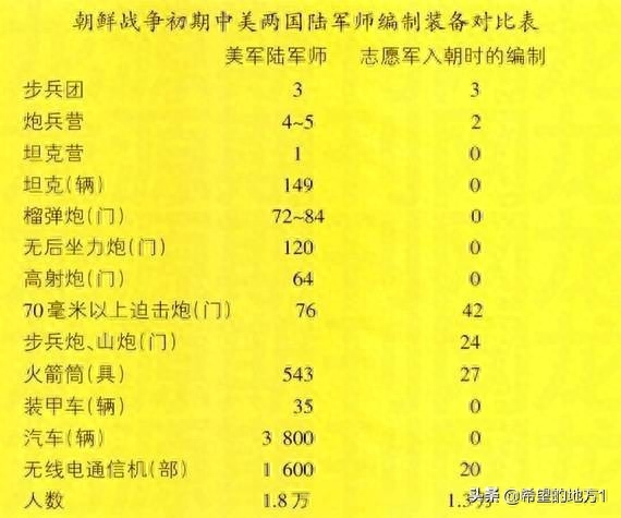 1950年中美师级单位武器装备和人员配备对比(上图)