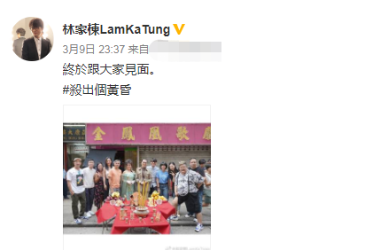 3月9日深夜,演员林家栋在社交平台上晒出电影《杀出个黄昏》的剧照,许久不见的冯宝宝罕见现身。