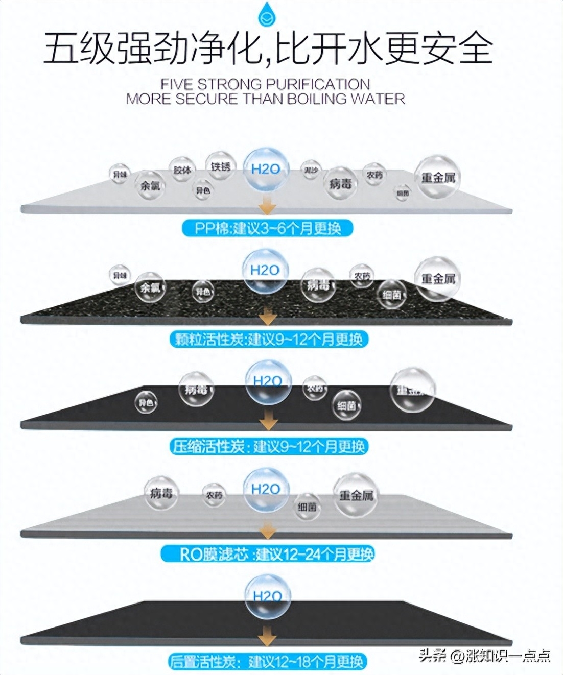 净水器能过滤的关键是净水器的滤芯。那么从了解这些滤芯开始,看看他们是怎么过滤自来水中的杂质的!