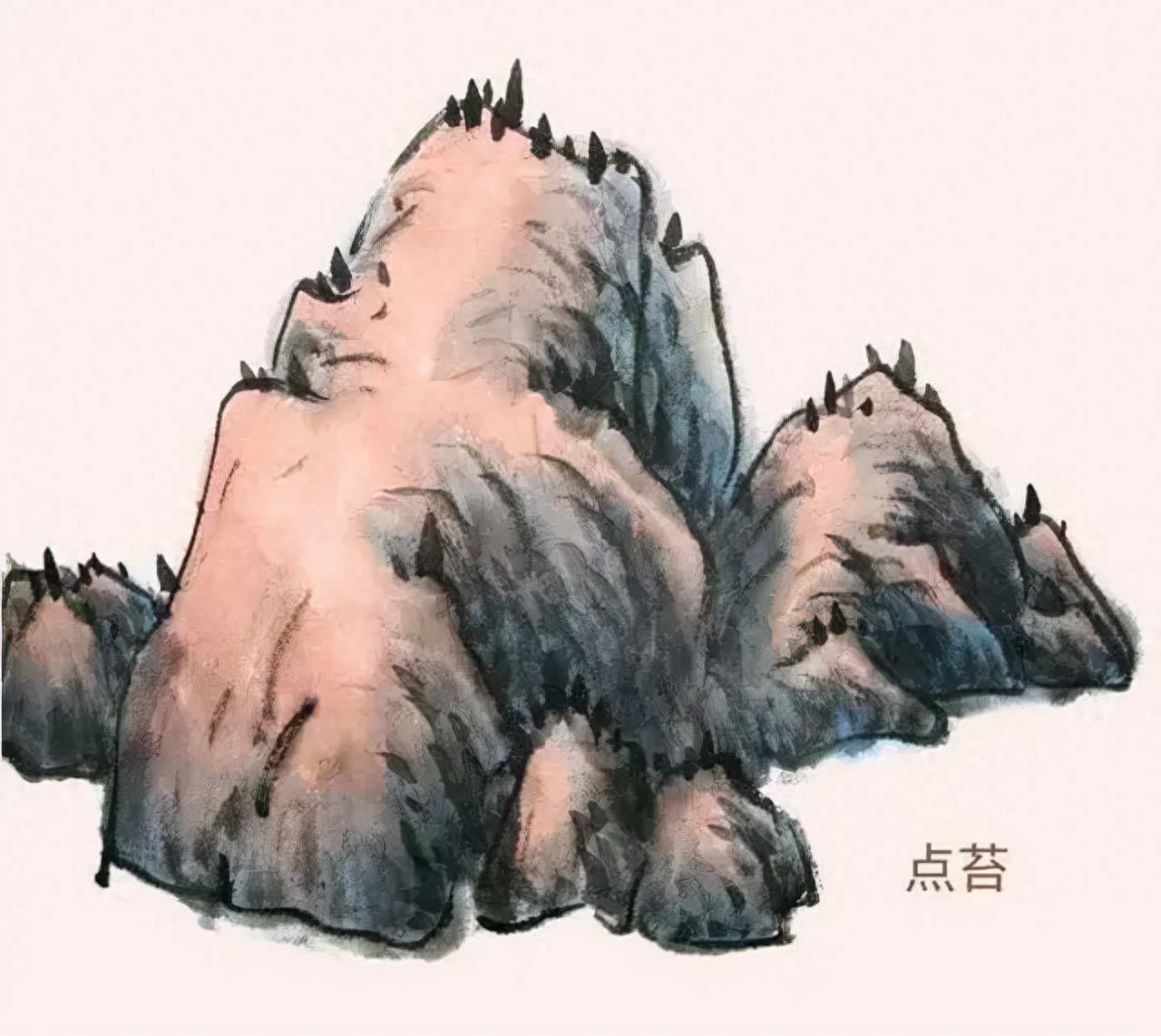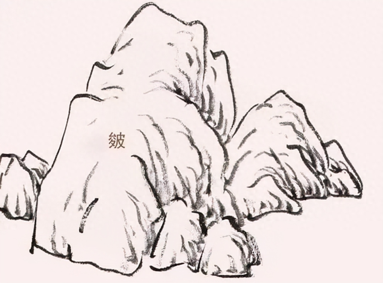在山石的暗部加以皴笔,加强山石的立体感。皴笔又总结出了不少方法,常用技法:解索皴、豆瓣皴、斧劈皴、米点皴、披麻皴和雨点皴等。