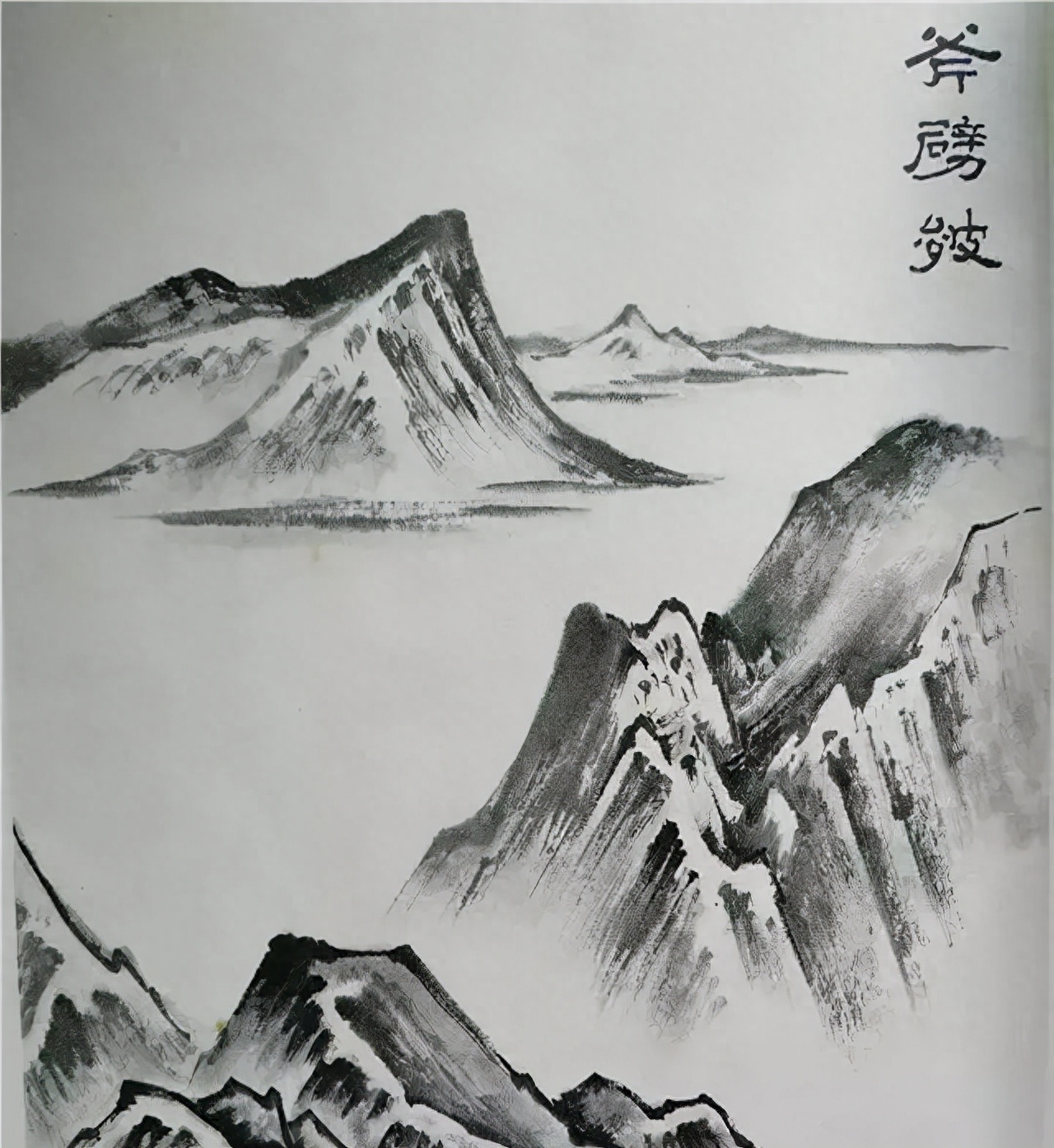 斧劈皴,传统山水表现雄伟山势常用皴法,要求深厚墨气和雄壮笔力,表