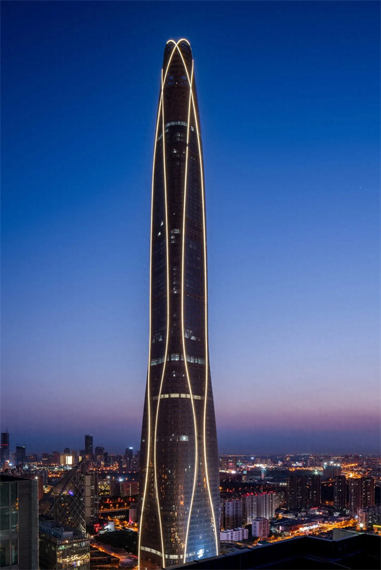 天津周大福金融中心如今已傲立渤海之滨。其多模式商业区、空气动力学造型、曲线斜柱体系、视觉效果震撼的围护结构,这些要素共同定义了新一代标志性高层建筑。