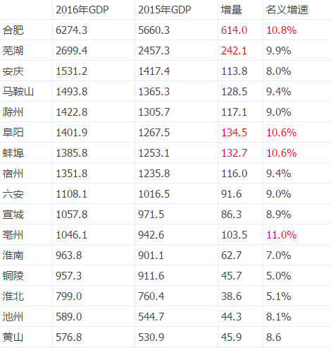 那么,安徽综合发展较快的城市还有哪几个呢?先来两张表: