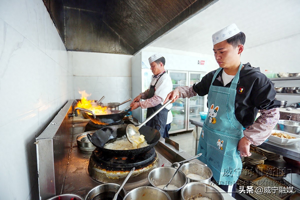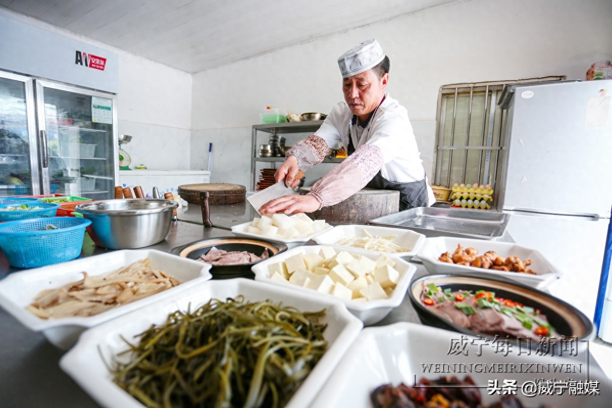 餐馆老板马永乖既是老板又是主厨,副厨是合伙人虎尊武。虎尊武说,回族的九大碗流传至今,已有数百年的历史。