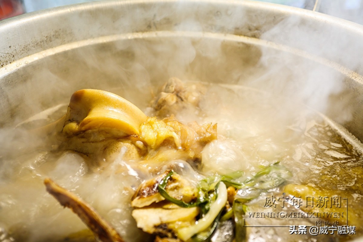 高汤是炖菜的秘诀。九大碗的高汤,是用新鲜的牛骨头文火慢炖几个小时而成。