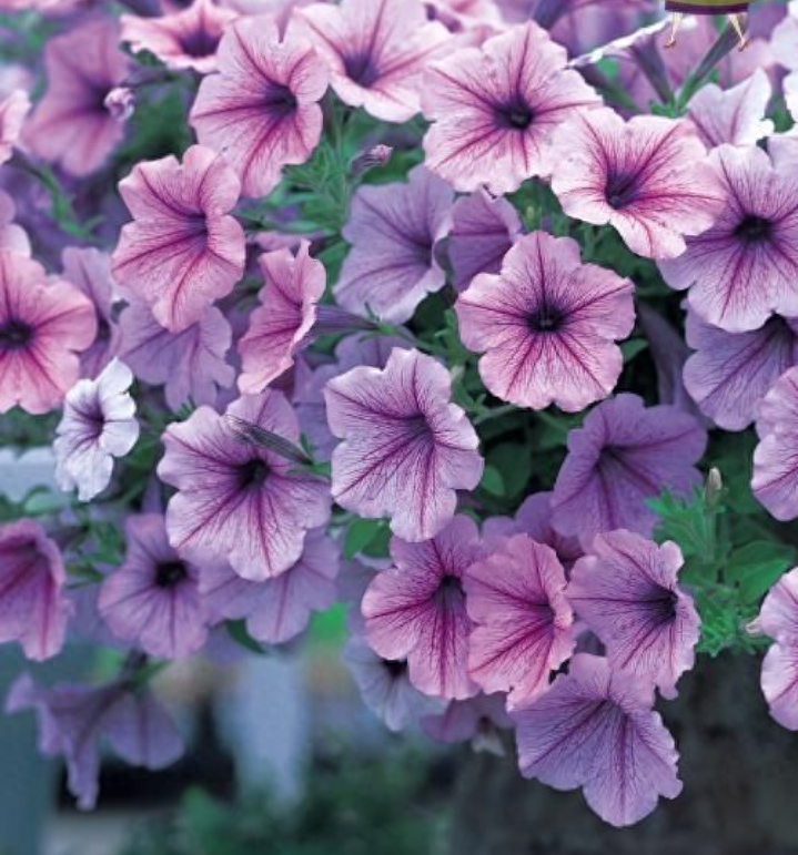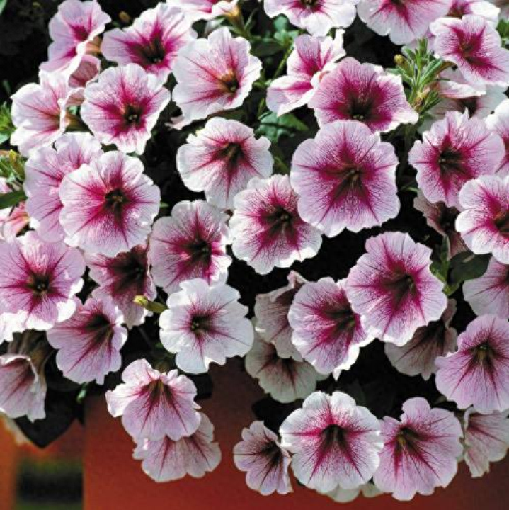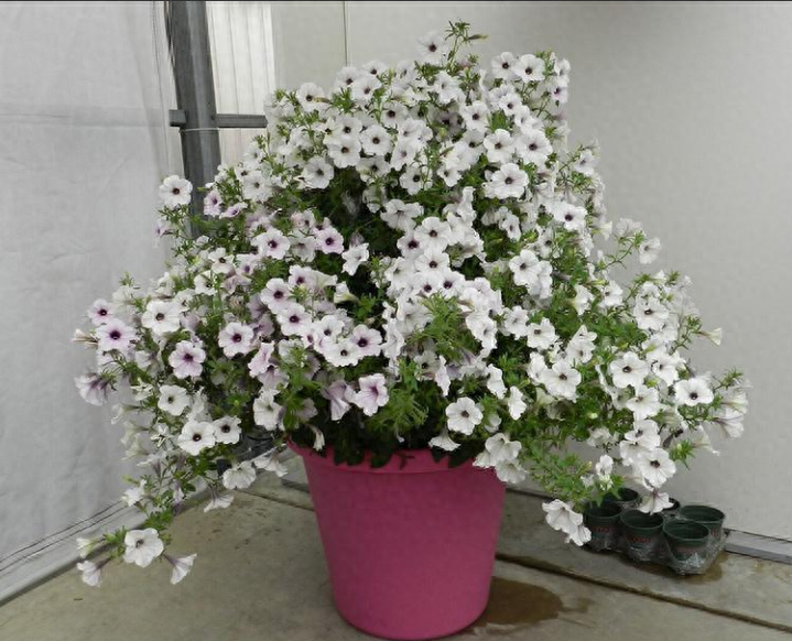 垂吊矮牵牛又名碧冬茄 ,多年生草本植物,常作一、二年生栽培。株高20∽30厘米,株形美观,富于变化;头状花序,花期长,花量繁多花又大,色彩丰富,观赏效果极佳,花期可以到从春天开到秋天。