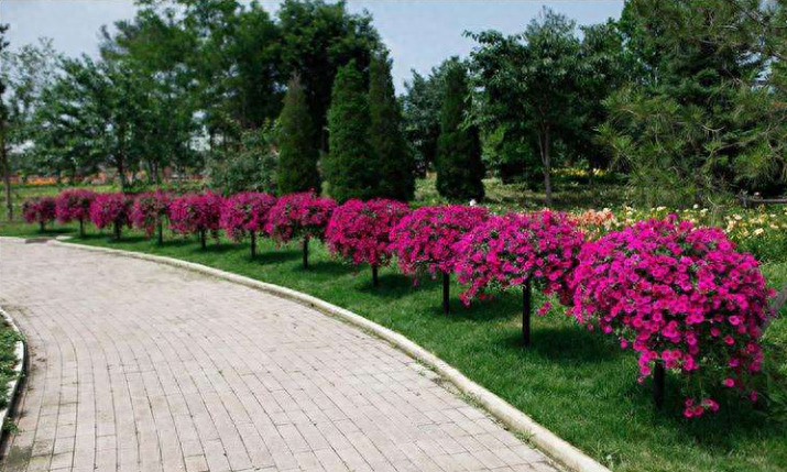 垂吊矮牵牛枝条生长的快,有些植株分枝少,会造成花篮不丰满,所以平实要及时整形剪枝。枝条有15~20个分枝时,可以使植株垂吊生长了。平实对老化的枝条应及时修剪,再萌生新枝,花期剪去开败的花蕾避免吸收过多养分,如有变黄的老叶及时剪掉。