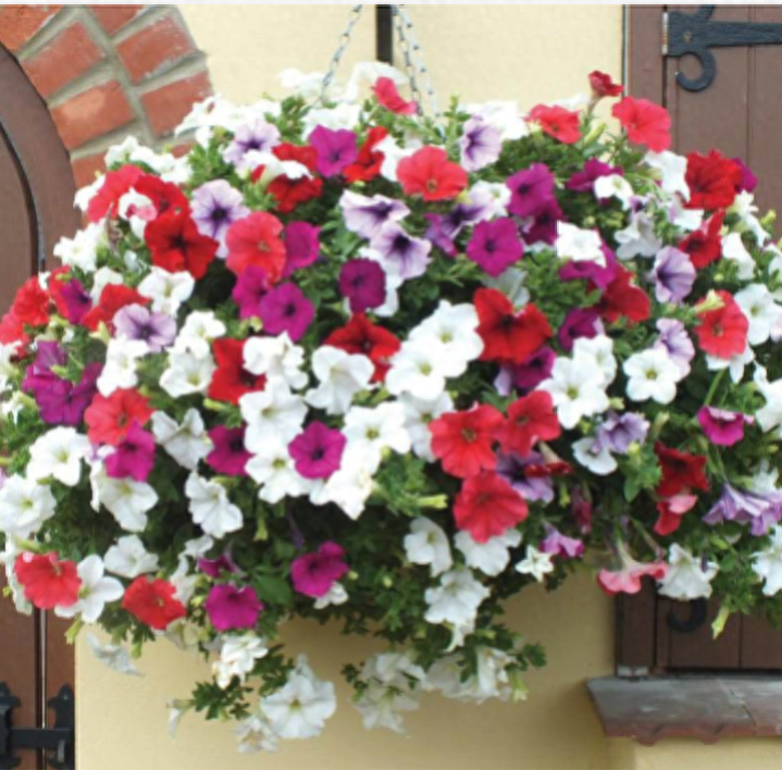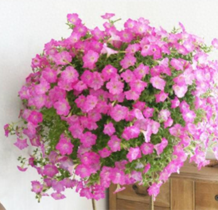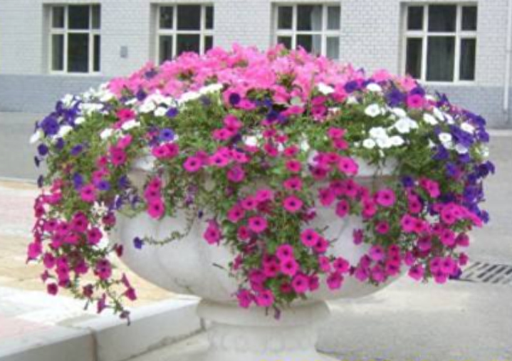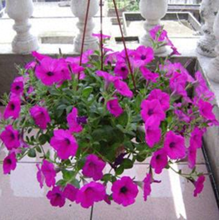 垂吊矮牵牛花大量多,株形美观,富于变化,关键是养殖此花不占地方,盆栽可以吊起来,挂在墙壁或窗台,真是美的不要不要的,深得爱花人士钟爱!