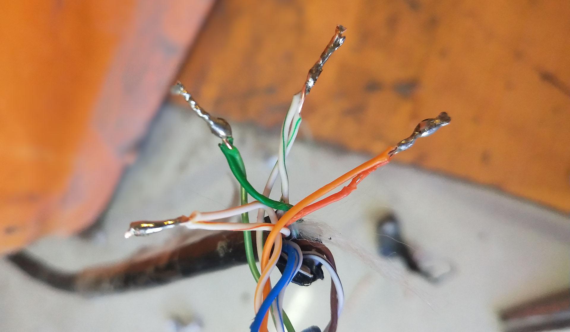 上好锡以后呢,必须要把线头接整齐了才行,否则不好包胶布的。有人就问我了,这不麻烦吗?再说我们搞弱电的,怎么可能把这电烙铁背在身上,这是家电维修工才有的工具呀,说真的,要想弱电搞得好,不但要软件能搞好,硬件也是要搞的,有时候文武双全是必须的。要买个恒温的电烙铁,100块就搞定了,那种小的,随时都带在工具包里,需要的时候就拿出来,很方便的,这100元也就是你们师傅们两包烟钱而已了。