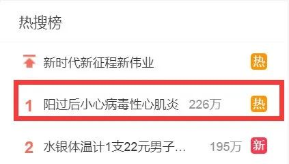 “阳过后小心病毒性心肌炎”话题,一度冲上热搜榜第一。
