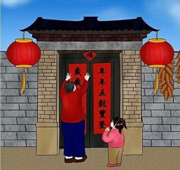 Spring scrolls and New Year paintings are always stuck on the doors and walls of a family. The content of the spring scrolls are various. Generally, the scrolls stuck on the door is to show the family status and the happiness to welcome the New Year; walking in, you will see the scroll about luck, such as "Raise your head and see happiness (Tai Tou Jian Xi)" and "Everything looks fresh and gay".