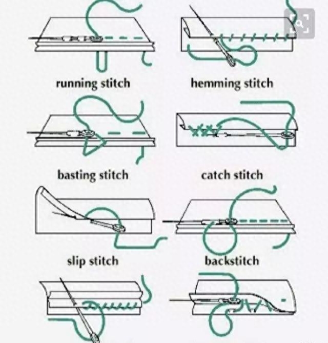 当然这些很多都是一些装饰品,最后,顺带给大家分享一些锁边儿图解针法。基本也是和纽扣经常使用到缝制手法。
