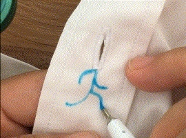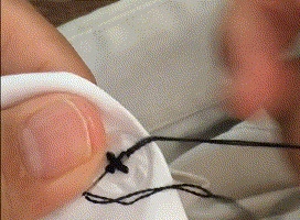9.把针线穿入衣服,在衣服下方打一个止缝结。