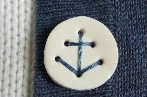 双孔扣的扣面上只有两个孔,常用作衬衫扣子;