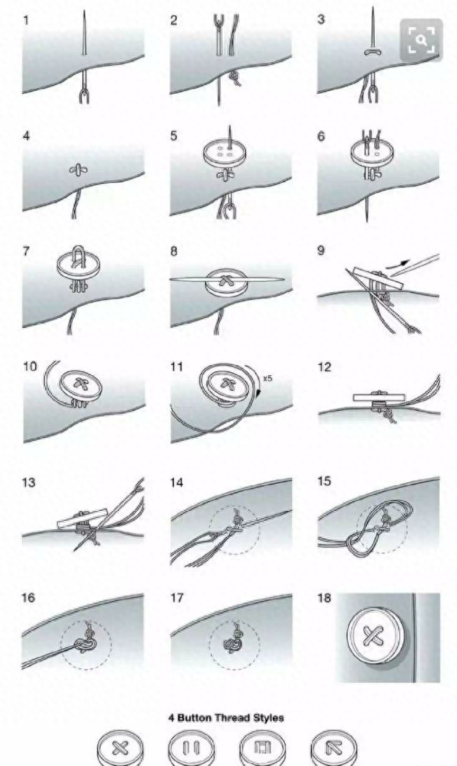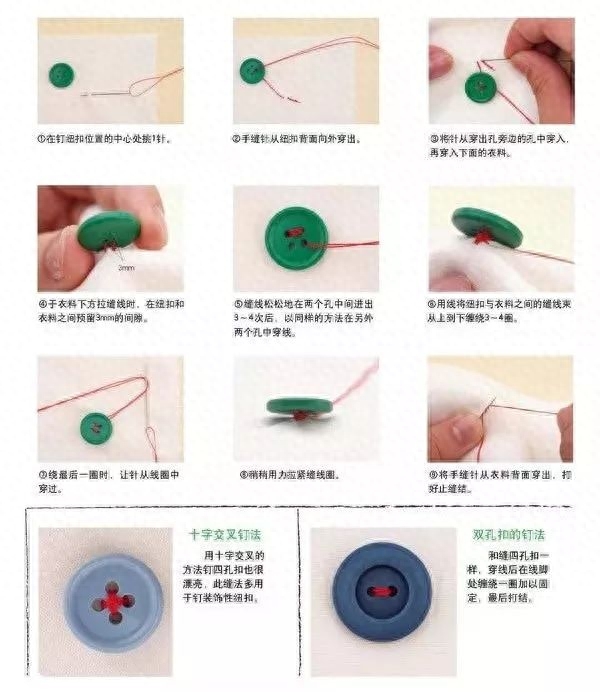 6种纽扣的缝制方法,学会了,以后衣服扣子掉了自己缝!附图解