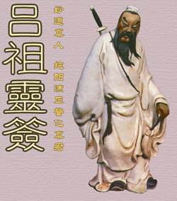 吕祖即吕岩,字洞宾,号纯阳子。由于道教全真道派奉吕岩为纯阳祖师,故世称吕祖。北宋末年,对吕祖的信仰和崇拜开始兴盛。宋徽宗宣和元年(1119年)封吕祖为妙通真人。南宋时已有专门奉祀吕祖的寺庙,并有塑像供奉。元世祖至元六年(1269年)褒赠纯阳演正警化真君。元武宗至大三年(1310年)又加封为纯阳演正警化孚佑帝君。吕祖神诞之日为四月十四日,道教信徒多於神诞日赴道观中吕祖殿烧香奉祀,或还愿,或祈愿。华南地区和南洋华人盛传吕祖签文,遇有急难,常於吕祖殿神像前求签问卜,祈求神示。