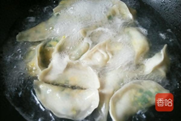 10.水烧开放点盐后放入饺子煮上,中间要轻轻的搅动几次(中间点一次凉水)
