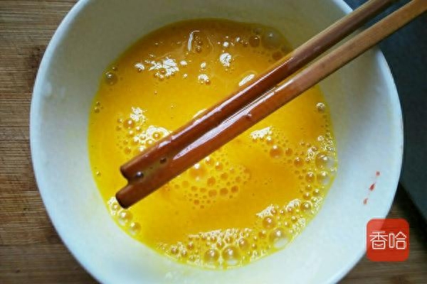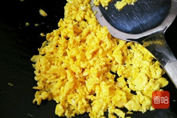 6.倒入鸡蛋炒凝固后用锅铲铲碎