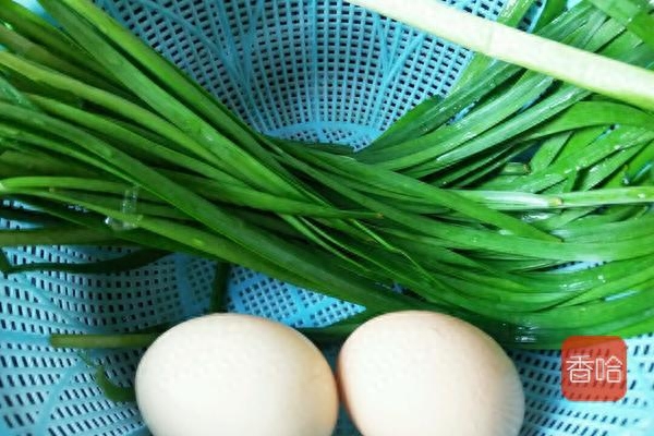 1.韭菜和葱洗净,鸡蛋洗去上面脏物,韭菜晾干水