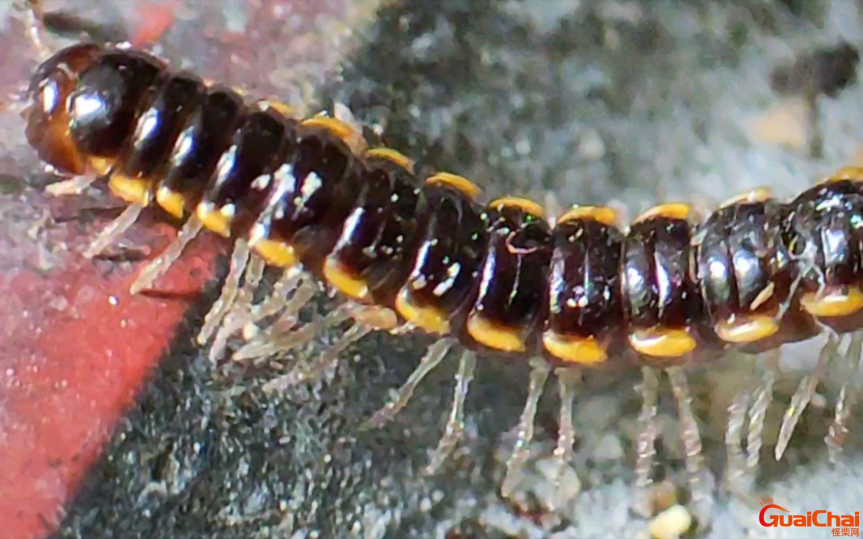 条马陆,除了头部没有足之外,其中每一个体节都有两足的,一共是有两百多对,是属于世界上足部最多的昆虫,在受到攻击的时候,可以直接将自己的身体进行弯曲,然后将头部直接卷在身体里面,这个时候,就会直接分泌出一些毒液来进行防御,是属于一种无脊椎的动物,背面也是会呈现黄色,头部有着一对触角,一般使直接栖息在一些潮湿的环境中,包括在一些石堆下面,也能看到这一昆虫的存在。
