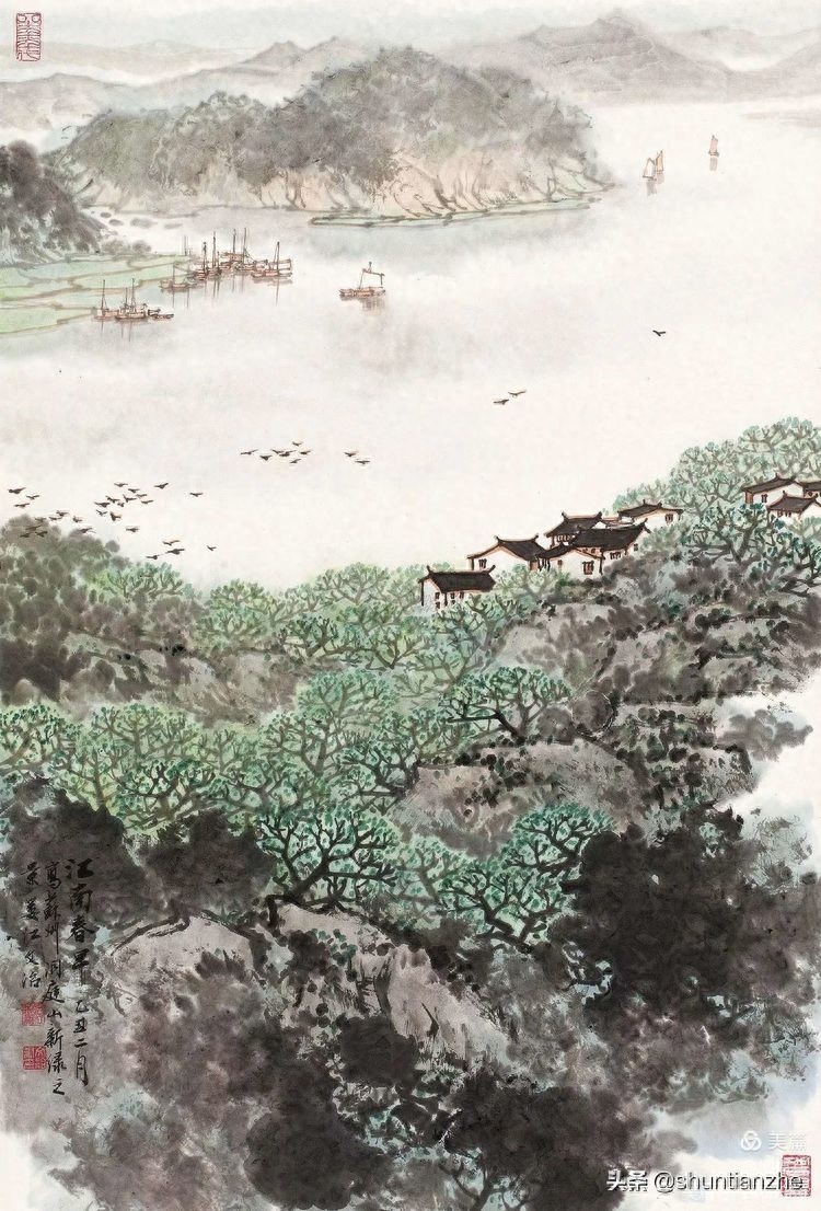 千里莺啼绿映红 , 水村山郭酒旗风 。