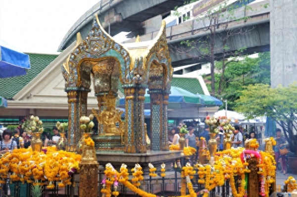 四面佛有四个面可以参拜,每一个面代表了人世间不同的祈求,因为太过灵验,所以每天都有人前去参拜,院内除了进去参拜的人,还有还愿的人,还愿有特定的仪式,使寺庙有种很独特的氛围。
