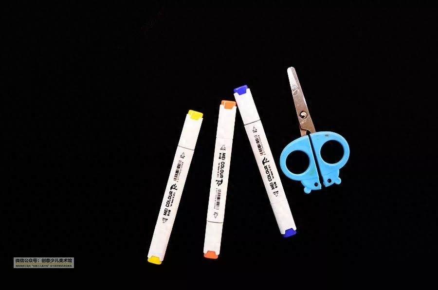 准备卡纸、水彩笔、剪刀