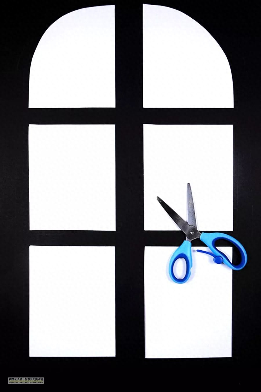 先在黑色卡纸上画出窗户的外形
