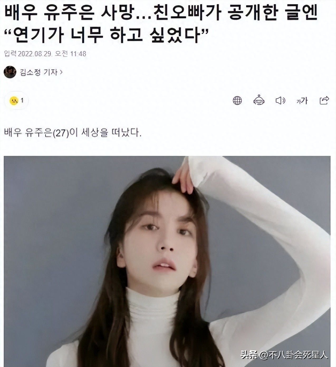 在29日,1995年出生的韩国女星刘恩珠自杀身亡,她的哥哥在社交平台上公布了这一噩耗,让不少粉丝震惊不已。