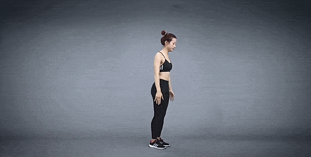 首先是训练动作的准备姿势,任何一项训练动作,正确的准备姿势都很重要,双手可以放在胸前的位置,双手自然地打开成站立的姿势,然后将膝盖稍微弯曲,臀部需要向后顶出。