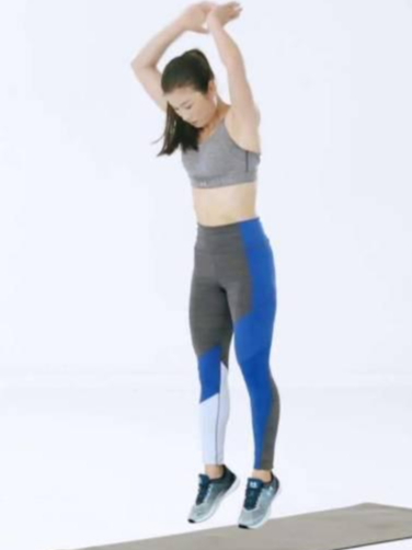 整个脚掌着地之后需要向上跳起,然后身体离开地面的时候,双脚处于冰冷的状态过程当中,双手需要从身体两侧打开,在空中做击掌的动作。