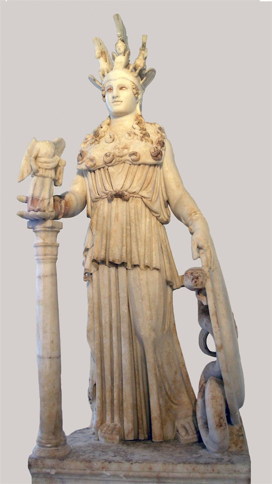雅典娜神像是公元前438年希腊雕刻家菲迪亚斯以香木、镶嵌着象牙与黄金雕刻而成的13米雕塑。原作在公元146年被罗马帝国皇帝安东尼·庇乌搬走了,至今下落不明。现存于雅典民族博物馆的仅高105厘米的大理石摹制品是公元2世纪的罗马作品。