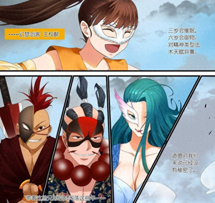 以上就是本期内容,总之,面具的成员各有特点,也都代表了当时人族百家齐放的局面,可惜的是从面具团灭之后,很多世家就一蹶不振了,其实对比常常喜欢用红红妖力碾压一切的白月初,我还是喜欢看这种各有互补的小团队,希望之后作者能把面具圈外征战的情况制作出了,让大家一饱眼福。